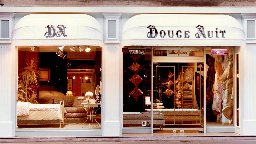 En 1977, le magasin voisin, au 49 rue Saint Jean ferme ses portes : c’est l’occasion pour La Reine Mathilde de saisir une nouvelle opportunité et d’étendre son activité. Après quelques années d’hésitation et surtout de préparation, l’enseigne Douce Nuit ouvre ses portes en 1981, à côté du magasin historique. Douce Nuit se spécialise dans la vente de literie, offrant aux Caennais un large choix de matelas, sommiers et autres accessoires pour un sommeil réparateur. Cette nouvelle activité est un succès et complète parfaitement l’offre de La Reine Mathilde en matière d’ameublement et de décoration.